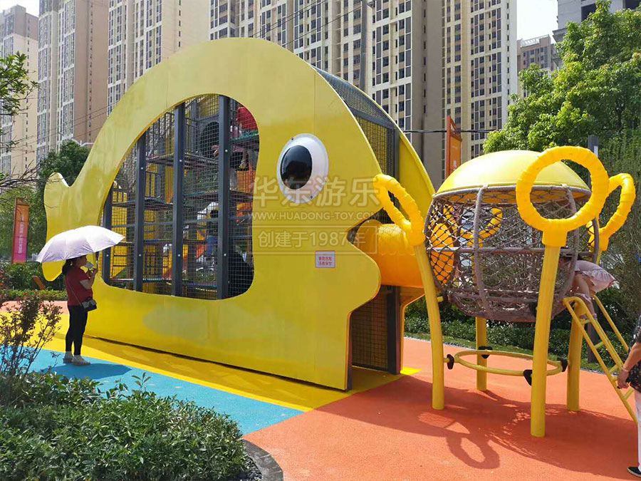 碧桂园城市之光案例是由必一运动游乐自助设计的研发的以水中的鱼儿为主题而设计的游乐设备,该游乐设备具有爬网、不锈钢滑梯、攀岩设备等,设计新颖,主题明确,深受小朋友的喜爱。