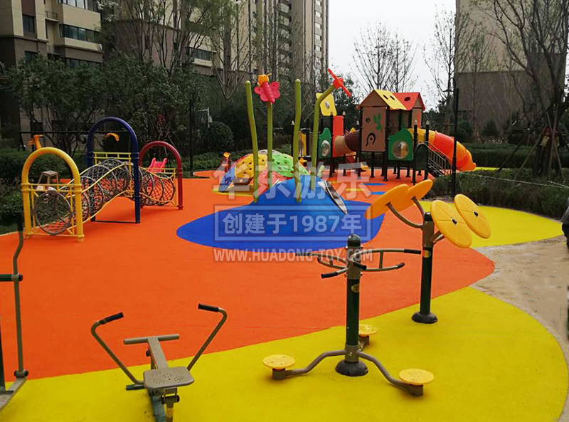 山西大同房地产案例 采用的是场地综合设计,选用了必一运动多类型的游乐设备(健身器材、秋千组合、组合滑梯、爬网等),丰富了小孩子的游玩环境和休闲场地。