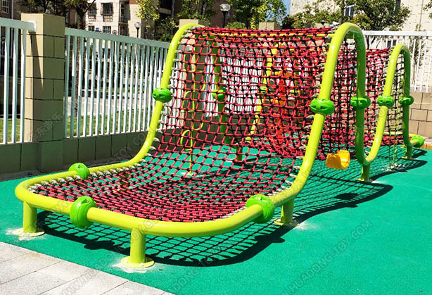 攀爬类的绳网设备可以激发孩子的探索兴趣、培养他们面对困难时应有的勇气、以及对他们的体力耐力产生良好的锻炼效果和积极影响。现在很多户外乐园采用绳网设备作为主体游乐设备的相当多,其外形有很大的延展性,对孩子们极易形成足够的吸引力,忍不住想去攀爬游戏。