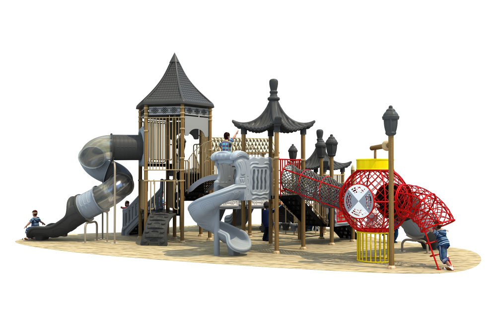• 中国风系列是一种具有中国风建筑特色的大型滑梯组合,以苏州园林与徽派建筑为灵感,将凉亭、房屋、大红灯笼融入现代游乐设备,体现建筑美学的简洁、复古、大方,为孩子打造一个奇妙的游乐世界,积极培养孩子对中国传统文化的热爱,弘扬中国传统与亲身体验。