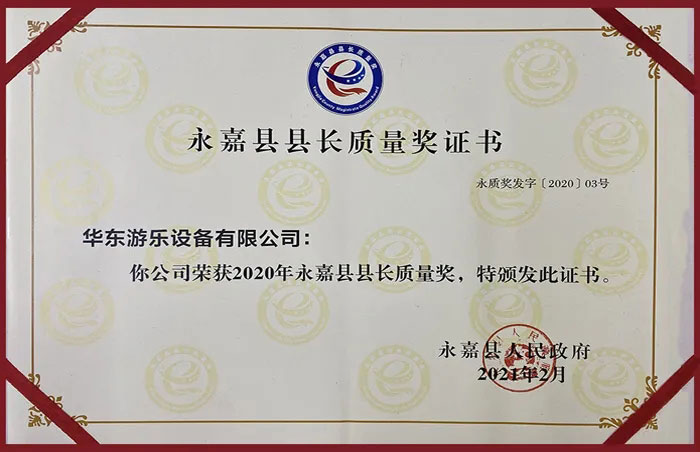 县长质量奖是永嘉县人民政府设立的最高质量荣誉,从企业的质量管理体系、客户服务、竞争力、产品研发创新能力以及可持续的业务增长能力等全方位进行综合评审,最终必一运动游乐从上千家企业中脱颖而出,被评为“永嘉县县长质量奖”。
