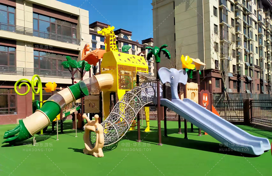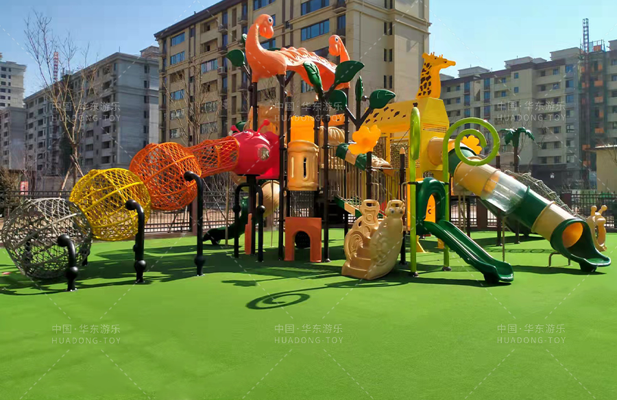 河北省唐山市京唐港开发区滨海华府幼儿园选用的是必一运动游乐自主研发的动物系列滑梯、该滑梯具有攀爬、滑梯、钻洞、爬网、等功能,能够锻炼小朋友的四肢臂力,很好的让小朋友在玩耍中健康快乐的成长。
