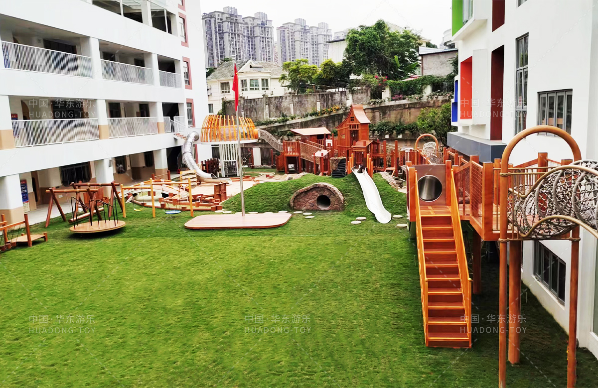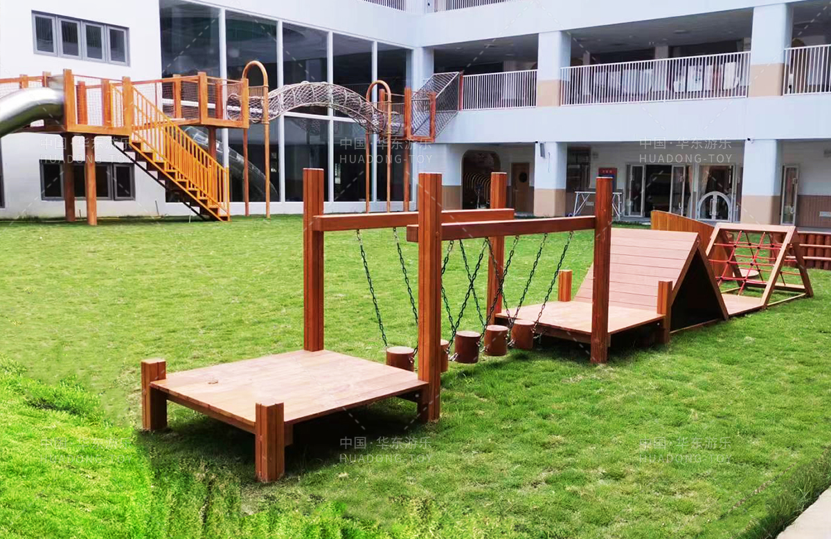 高峰幼儿园是一个专业的学前教育培训机构,此次选用的是必一运动游乐设计和生产的木制非标定制的游乐设备,设计了具有攀爬网、钻洞、秋千、木制拓展、木制小屋、不锈钢滑梯等功能的游乐设备,丰富的功能、优质的设备、让整个校园充满了生机与活力。