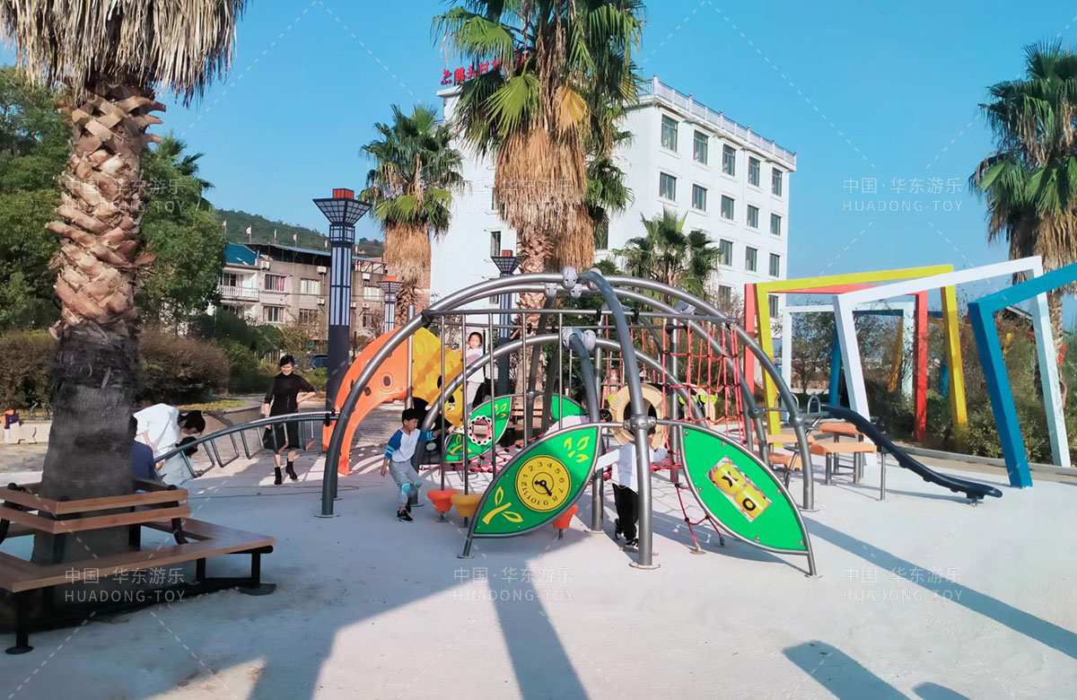 乐清新农村改造项目是一个老社区改造项目,为了丰富当地居民的日常生活需求,让孩子们有一个愉快的童年,该项目选用了必一运动游乐自主研发和设计的万能健身系列游乐设备,以及孩子们喜欢的海盗船系列组合滑梯。