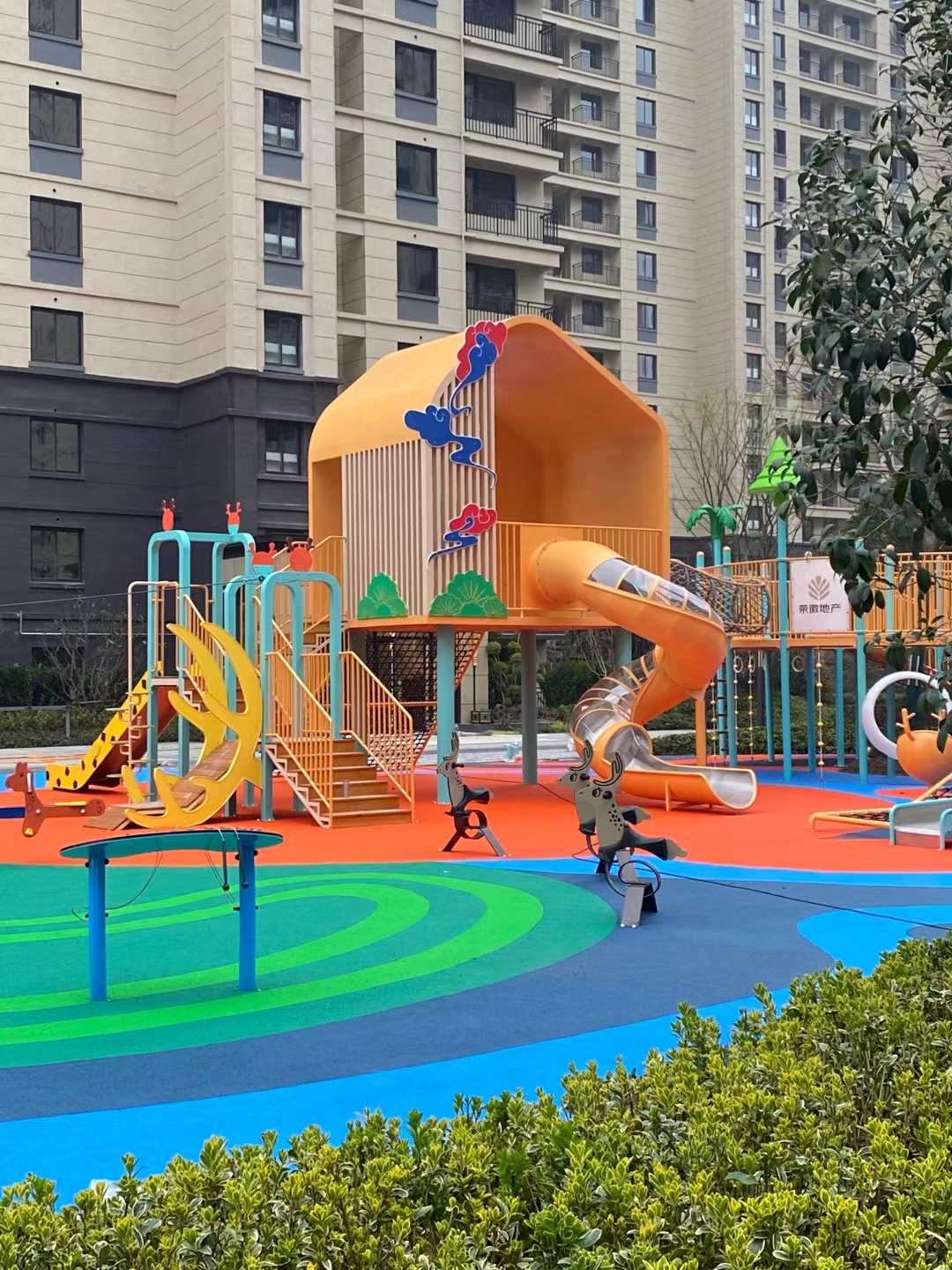 建投东方名府源著儿童游乐项目是必一运动游乐生产的非标定制的主题性游乐设备,整个项目采用以森林麋鹿为设计主题,分别设计了攀爬网、钻洞、不锈钢滑梯、旋转椅、传声筒、秋千、脚踏平衡杆、攀爬梯等功能,为小朋友的健康成长提供了一个很好的游玩场所。