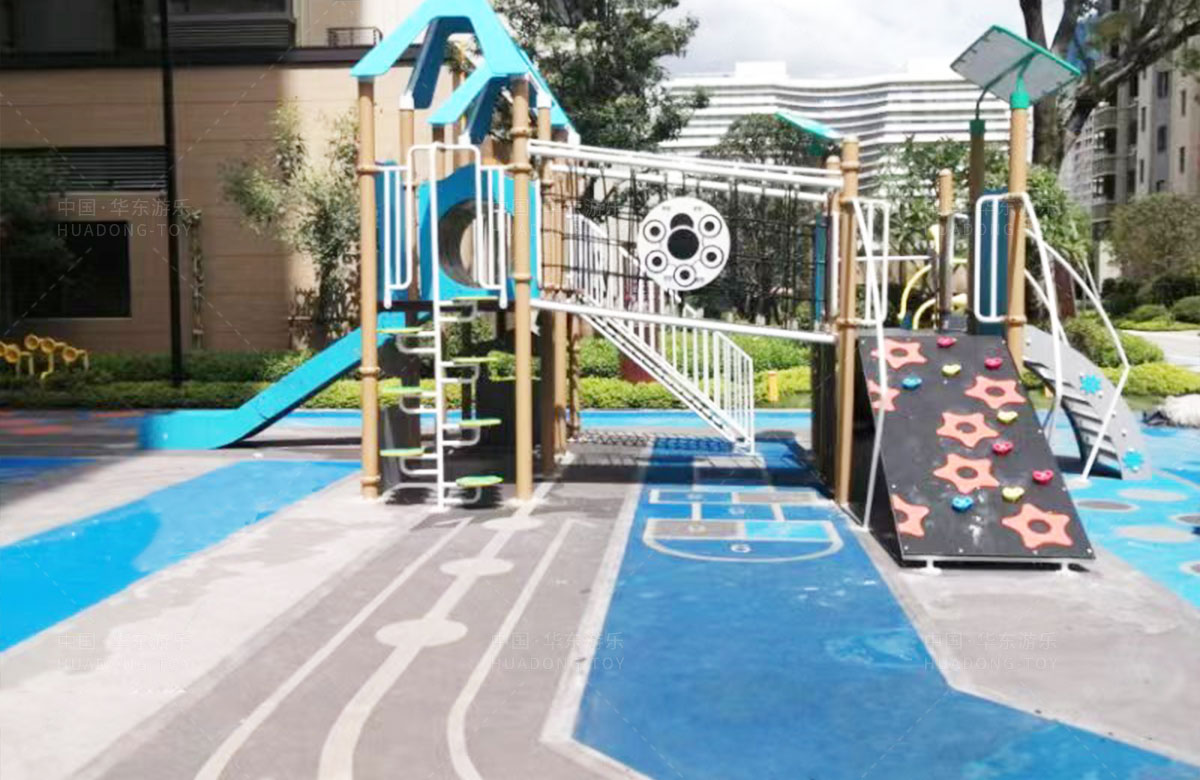 该项目选用的是必一运动游乐自主研发和设计的PE板系列组合滑梯,该滑梯是一款具备了攀爬墙、攀爬网、攀爬梯、空中网桥、不锈钢滑梯等功能为一体的综合性游乐设备,除此之外还设置了小朋友喜欢的传声筒、攀爬墙、翻翻乐和成年健身器等设备,不仅丰富人们的休闲生活,也为该小区增加了更多的生机与活力。