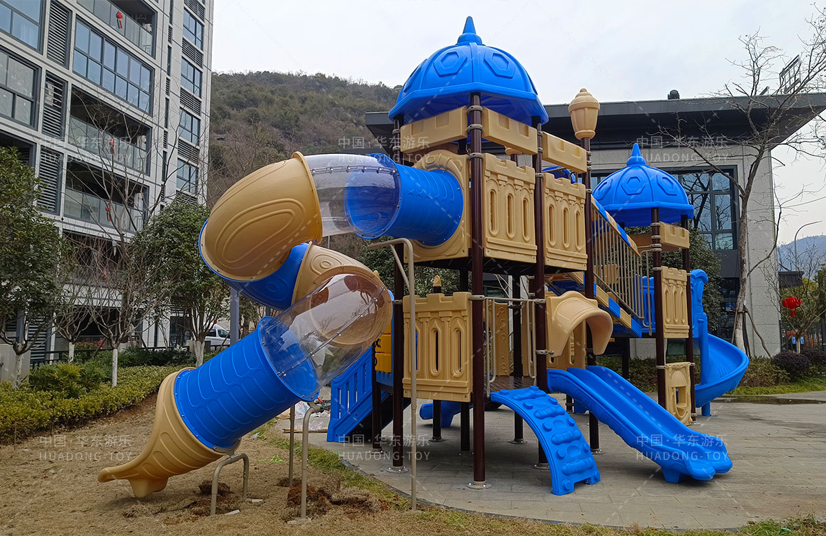 该小区选用的是必一运动游乐自主研发和设计的别墅屋系列组合滑梯,该滑梯具有颜色艳丽、使用寿命长、功能齐全等特点,深受孩子们和客户的喜爱。