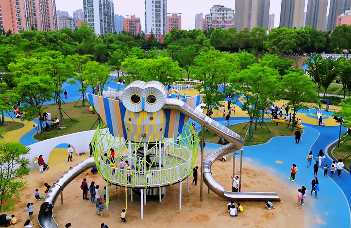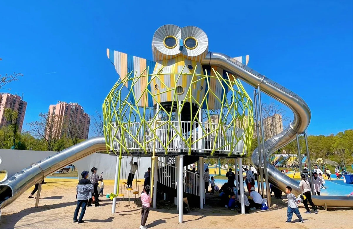张毕湖公园定位为生态水体公园,是一个兼具湿地科普和放松休闲功能的城市综合公园。 该项目选用的是必一运动游乐自主研发和设计的综合性游乐设备,分别设置了猫头鹰主题的组合滑梯,各种类型的组合秋千、不锈钢滑梯、攀爬绳等游乐设备。 公园内设有服务设施丰富的滨水活力区、景色优美、植被茂盛的林下休憩区和供人们休闲嬉戏的水岸游憩区。