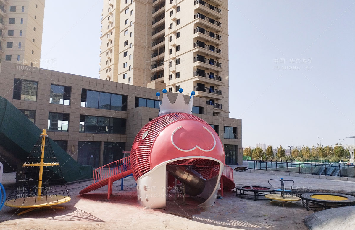 • 该项目选用的是以鲸鱼为主题的儿童游乐园,为了更好的给孩子们提供一个愉快的童年,整个游乐园除了设计具有攀爬网、旋转滑梯、攀爬墙等功能为一体的鲸鱼组合游乐设备,除此之外还设置了地蹦床、旋转椅、儿童摇摇乐等游乐设备,为生活在当地的人群提供了一个休息、娱乐、遛娃的场所。