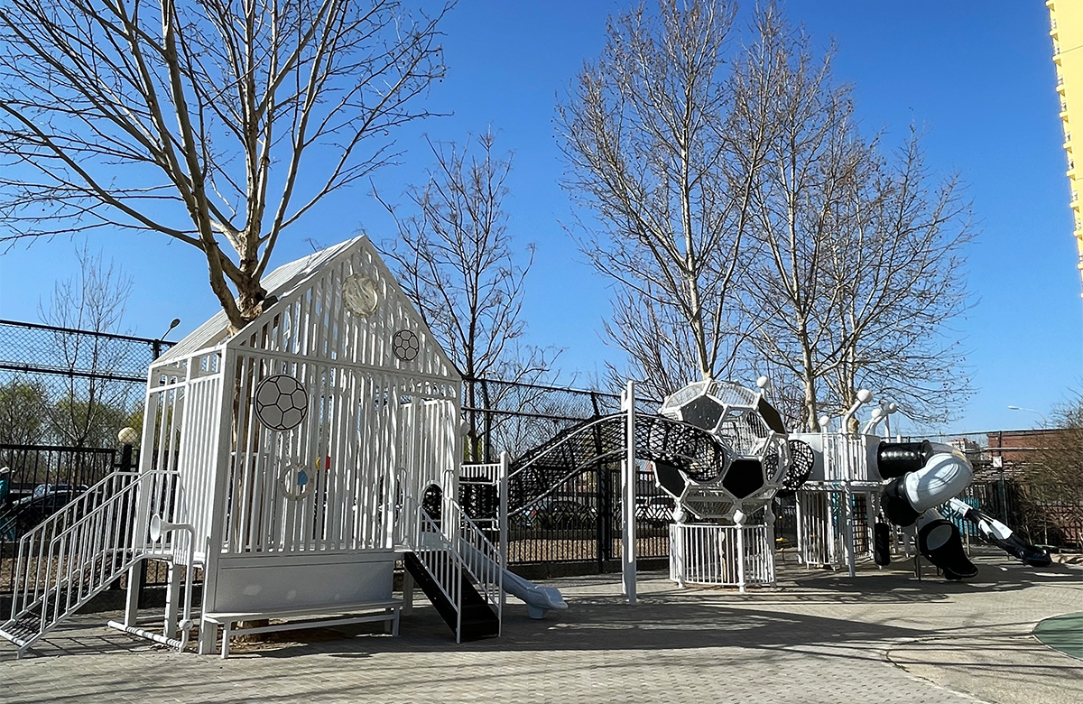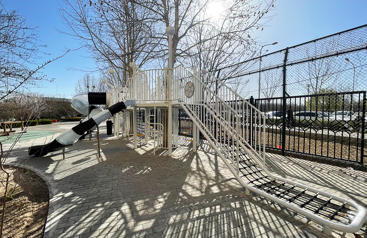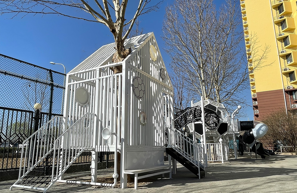 北京市朝花幼儿园是一个高端的学期教育学校,为了更好的让孩子们有一个玩耍的场所,整个游乐场选用了由必一运动游乐自主研发和设计的非标定制系列的游乐设备,该游乐设备采用森林小屋和足球主题相互结合的方式进行设计,让整个校园充满了生机与活力,同时也为老师的教学提供了一个很好的场所。